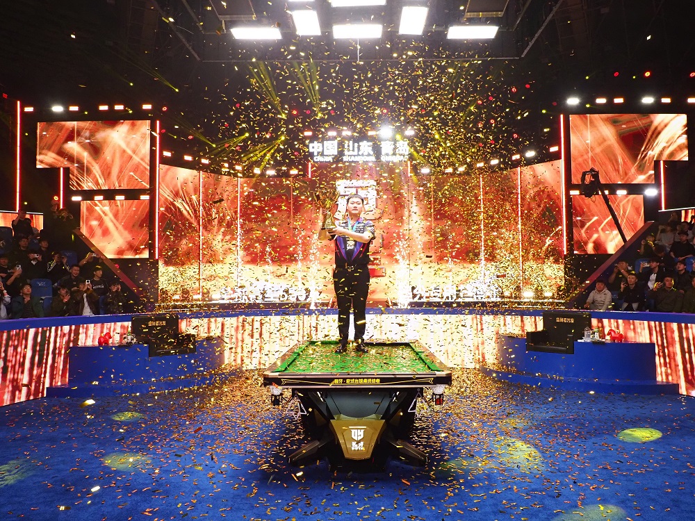 当赵剑波高举奖杯的一刻,蓝宝石赛场礼花齐放,全场欢呼声震耳欲聋,灯光与荣耀聚焦于这位中式九球新王身上,成为中式台球发展史上经典画面。